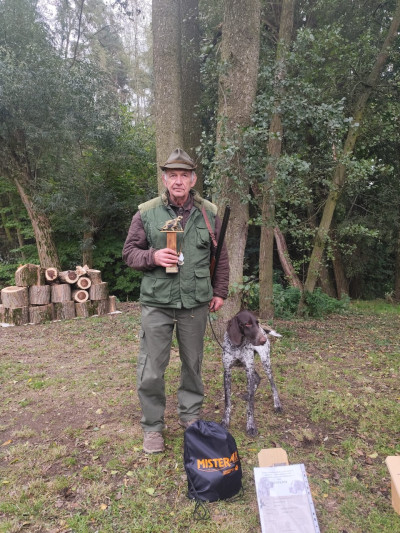 V letošním roce byl pro nás vrchol účastnit se s Fabi Memoriálu Františka Vojtěcha. Memoriál se konal 21. - 22. 9. 2024 v Zákupech, už v pátek byl na programu příjezd všech startujících a pracovní zahájení se slavnostním losováním. Moje ruka vytáhla číslo 7 , říkal jsem si bude šťastné? V sobotu ráno se konal slavnostní nástup za doprovodu trubačů a samotné zahájení celého memoriálu, atmosféra takovéto soutěze je zcela nezapomenutelná. Vylosované číslo nám s Fabi přidělilo na první den pole, jako první nás čekalo malé pole. Bez ztráty, samé 4. Následoval přejezd na vodní práce, zde už nejaká ztráta byla 3,3,3,4. Jako poslední pracoviště bylo velké pole, zde Fabi předvedla dokonalou práci na pernaté zvěři, kterou na dálku vystavila a počkala do mého příchodu, společně jsme postupovali než bažant vzlétl a byl uloven, přinešení bez promlému.